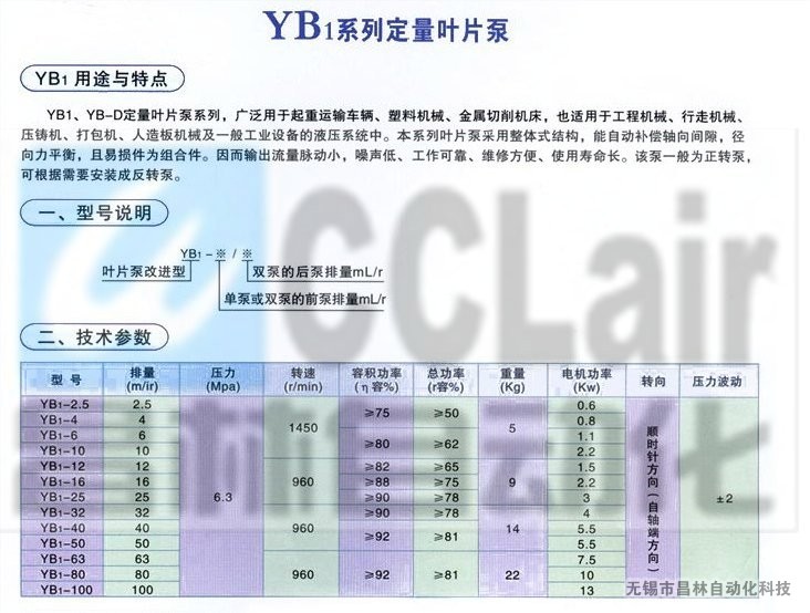 YB1-40,YB1-50,YB1-63,YB1-80,YB1-100,定量葉片泵