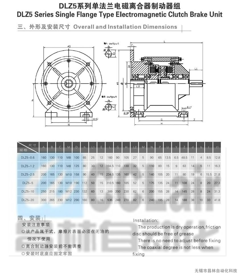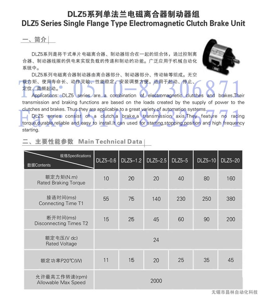 DLZ5-0.6,DLZ5-1.2,DLZ5-2.5,DLZ5-5,DLZ5-10,DLZ5-20單法蘭電磁離合器制動器組