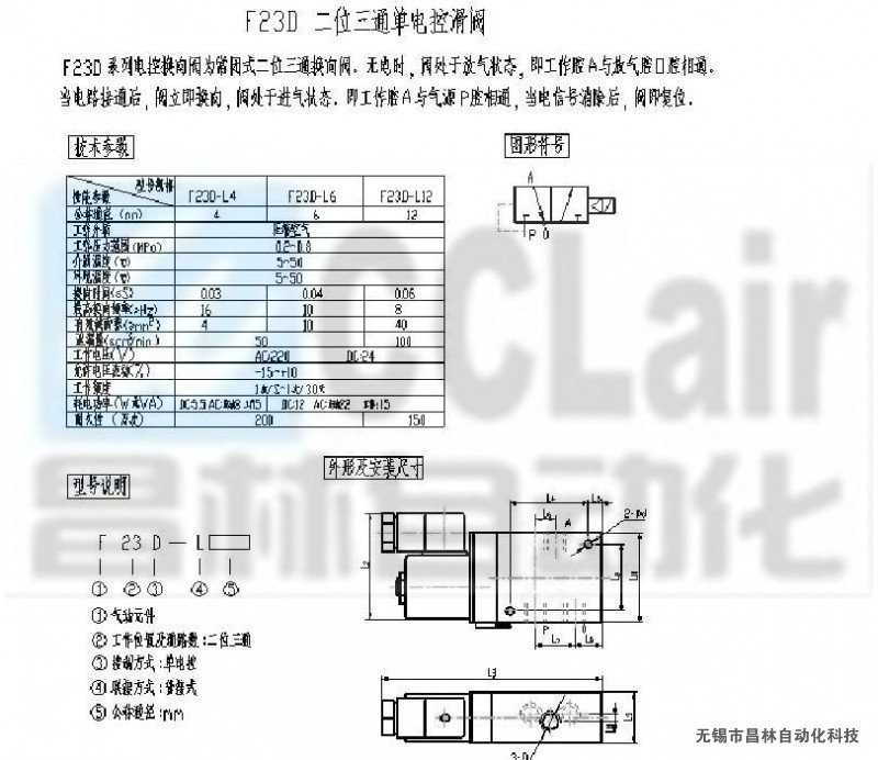 F23D-L4,F23D-L6,F23D-L12,二位三通單電控滑閥