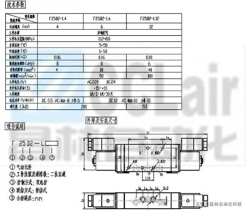 F25D-L6,F25D2-L6,F25D-L12,F25D2-L12,二位三通單電控滑閥