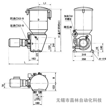 (3)雙泵帶電動(dòng)換向閥潤(rùn)滑裝置外形尺寸