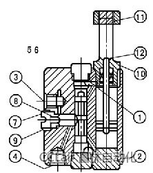 | 雙線分配器有兩個(gè)進(jìn)油口,分別與5a.5b供油管連接,當(dāng)其中一條由潤(rùn)滑泵供油時(shí),另一條則向貯油器開放。 如上圖所示,由泵壓送來(lái)的潤(rùn)滑脂,經(jīng)供油管5a輸送至分配器4,進(jìn)入先導(dǎo)活塞4a上部加壓,將先導(dǎo)活塞4a壓下,此時(shí)下部與供油管5b連通卸荷。隨著先導(dǎo)活塞4a的下移,使主活塞4b上腔與先導(dǎo)活塞上腔連通,主活塞下腔與出油口連通,供送的潤(rùn)滑劑進(jìn)入主活塞上腔,推動(dòng)主活塞下移,將其下腔的潤(rùn)滑劑經(jīng)給油管6壓送到潤(rùn)滑點(diǎn),完成第一周期的給油動(dòng)作。 切換至供油管5b供油開始第二個(gè)周期的給油動(dòng)作,分配器活塞按相同的順序反向進(jìn)行前述動(dòng)作。 分配器每口給油口由主活塞4b的直徑和行程確定,通過調(diào)節(jié)調(diào)整螺釘7,改變主活塞4b的行程,可實(shí)現(xiàn)規(guī)定范圍的油量調(diào)節(jié)。 SSPQ-L系列分配器動(dòng)作原理同上,供油管5a、5b分別供油一次其下部和正面給油口分別排油一次。 |