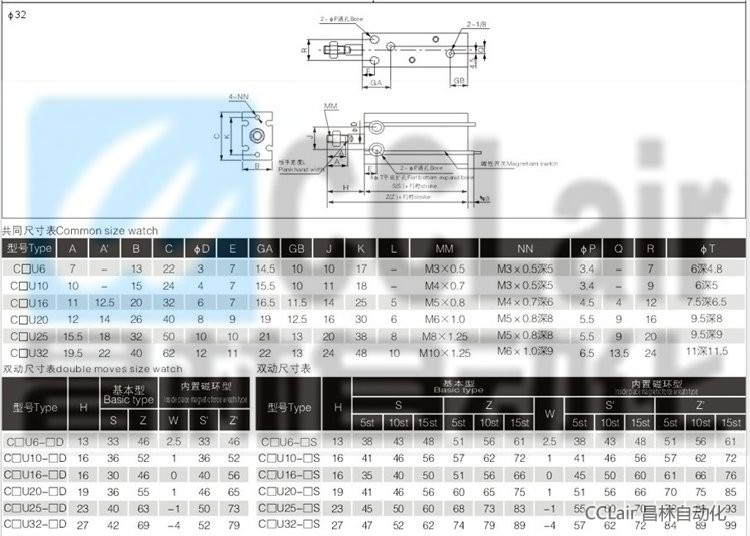 CU32-5S,CU32-5T,CU32-10D,CU32-10S,CU32-10T,CU32-15D,CU32-15S,CU32-15T,自由安裝型氣缸,生產(chǎn)廠家,價格