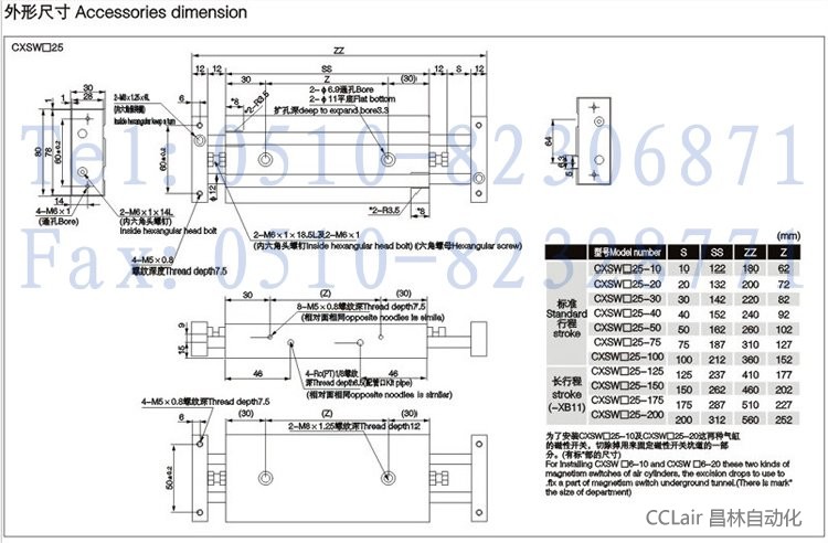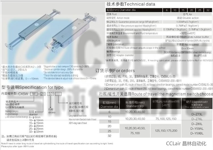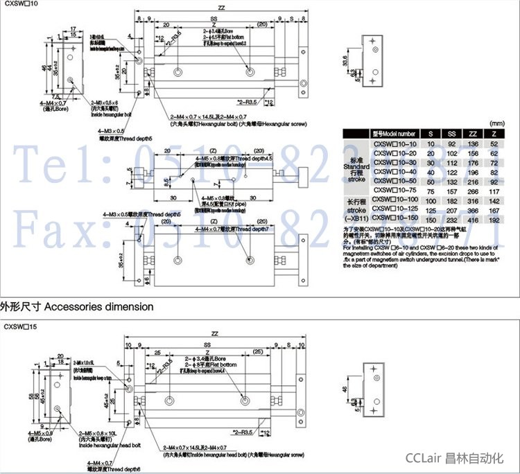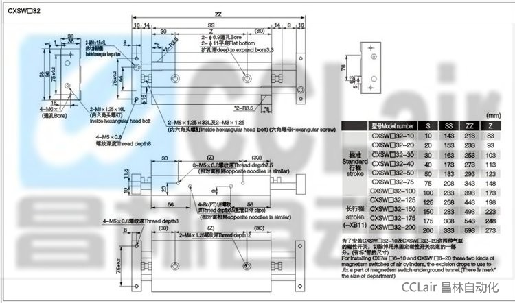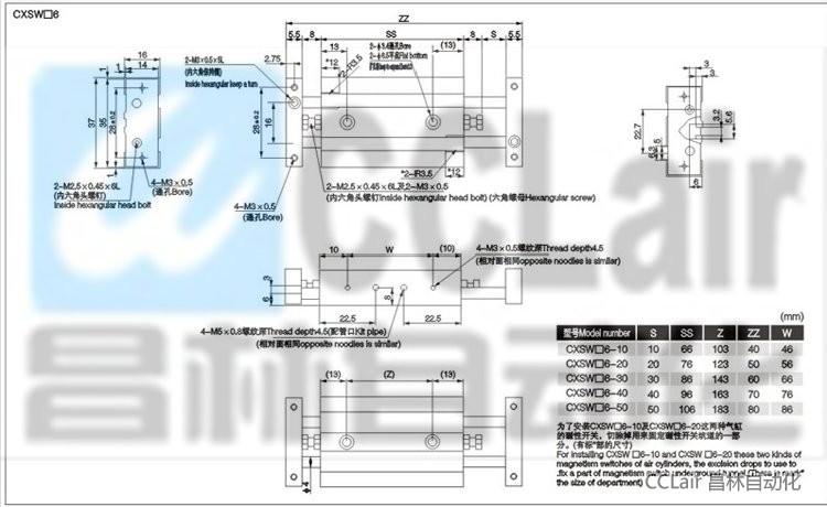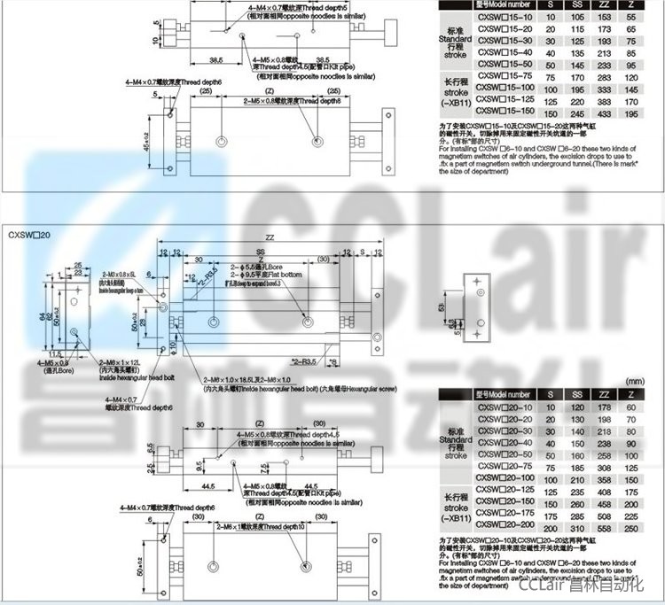 CXSWM15-40,CXSWM15-50,CXSWM20-10,CXSWM20-20,CXSWM20-30,CXSWM20-40,通桿型氣缸