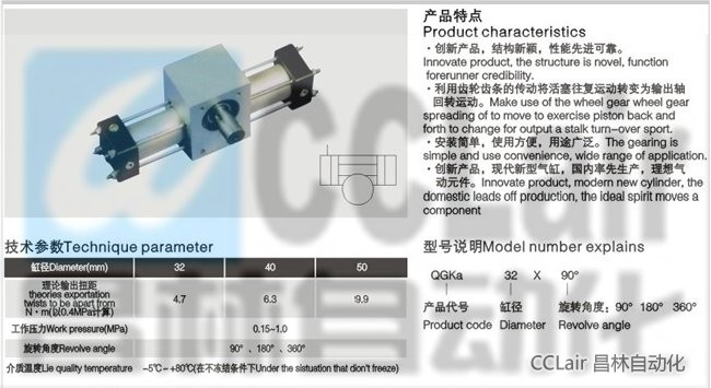 QJKa50*90°,QJKa50*180°,QJKa50*360°,齒輪齒條擺動氣缸(軸式)