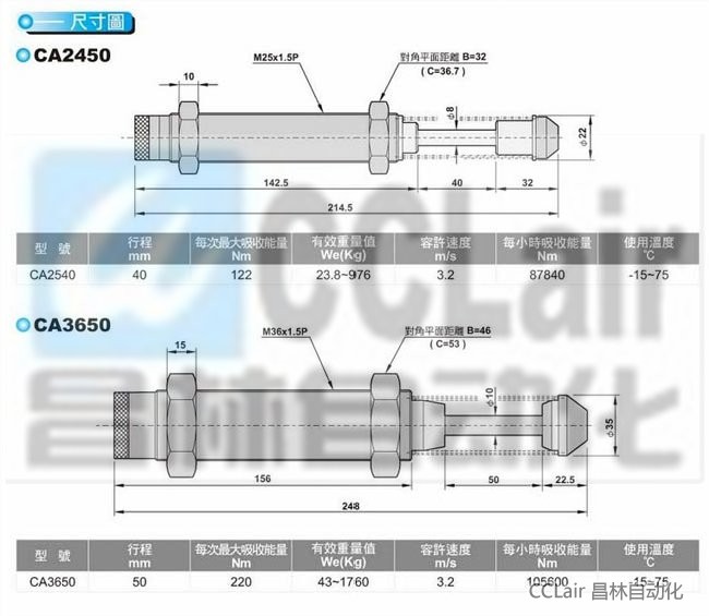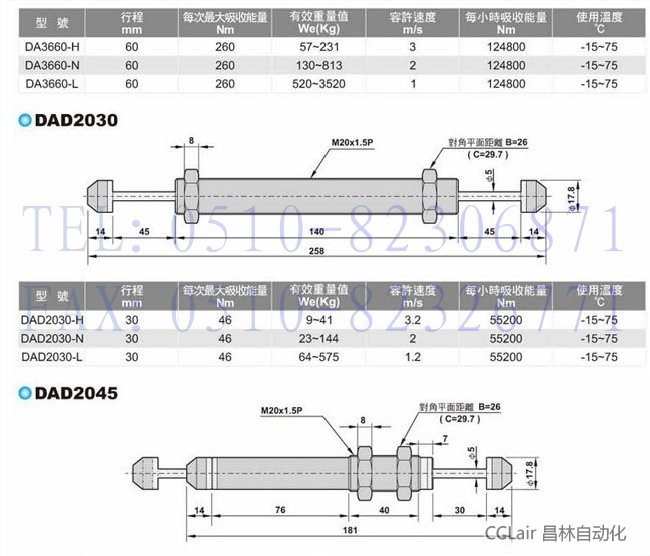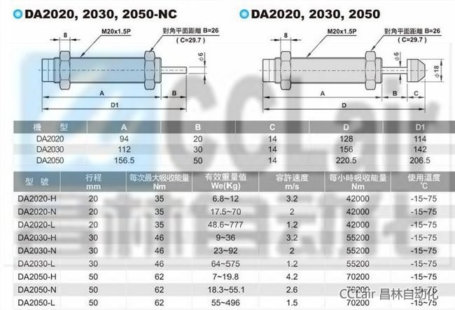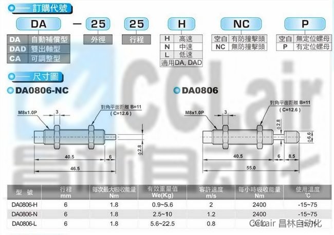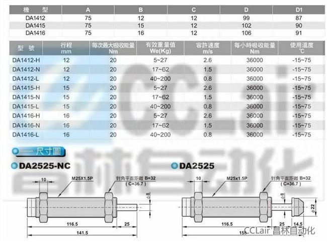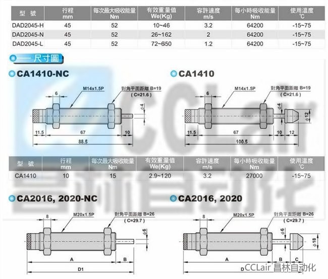 DA2525,DA2540,DA2580,DA3660,DAD2030,DAD2045,CA1410,CA2016,CA2020,CA2016,CA2020,CA2525,CA2540,CA3650,油壓緩沖器,新恭油壓緩沖器,價格