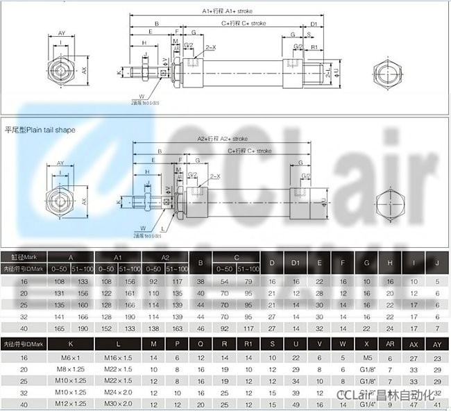MSAL-CM32-350,MSAL-CM32-400,MSAL-CM32-450,MSAL-CM32-800,MSAL-CM32-1200,鋁合金迷你型氣缸