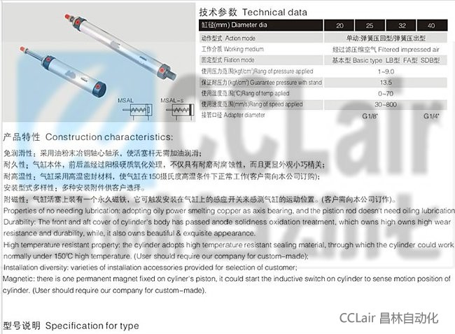 MSAL-U20-150,MSAL-U20-175,MSAL-U20-200,MSAL-U20-250,MSAL-U20-300,鋁合金迷你型氣缸