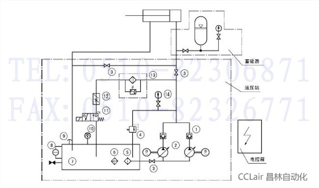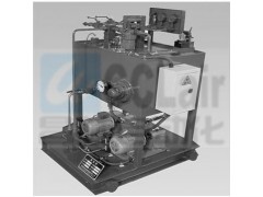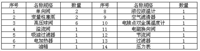 系統(tǒng)裝有兩套可調流量微量計量泵,正常工作時,油泵一臺工作,一臺備用,在特殊需要時亦可允許同時起動兩泵,系統(tǒng)最高壓力為10MPa,最低壓力為4MPa,油缸上行速度由變量微量油泵來調定,油缸下行時的速度由節(jié)流閥來調定,油溫是由裝在油箱上的雙金屬電接點溫度來控制電加熱器的關閉,油站系統(tǒng)有一臺精度