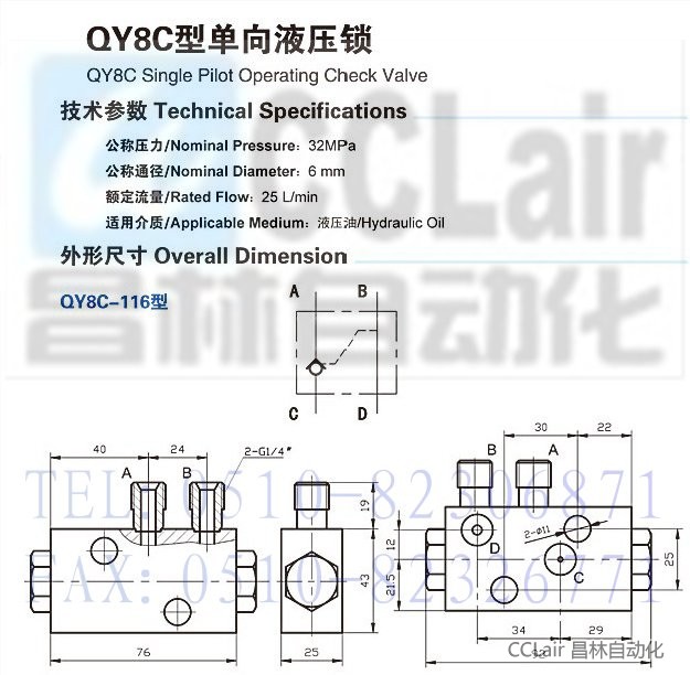 QY8C-116,QY8C-6212,單向液壓鎖,生產(chǎn)廠家,價格
