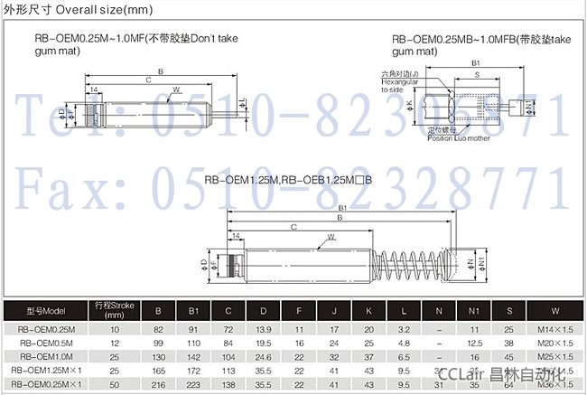 RB-OEM0.25M,RB-OEM0.5M,RB-OEM1.0M,RB-OEM0.25MB,RB-OEM0.5MB,可調(diào)壓力式油壓吸震器