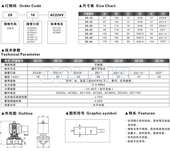 2S-10,2S-15,2S-20,2S-25,2S-35,2S-40,2S-50,不銹鋼常閉流體電磁閥,生產(chǎn)廠家,價格