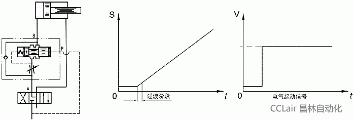 調(diào)速閥由節(jié)流閥和帶壓力補(bǔ)償?shù)臏p壓閥串聯(lián)組成,適用于負(fù)載變化大,工作速度要求穩(wěn)定的調(diào)速系統(tǒng)中。