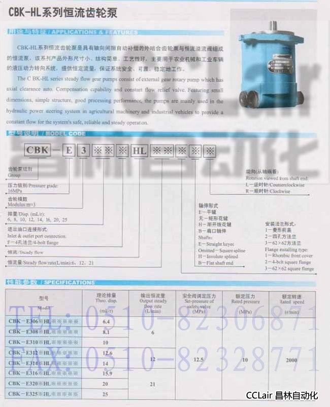 CBK-E312FHL6E,CBK-E312FHL6,CBK-E312FHL6H,CBK-E312FHL6B,恒流齒輪泵 ,