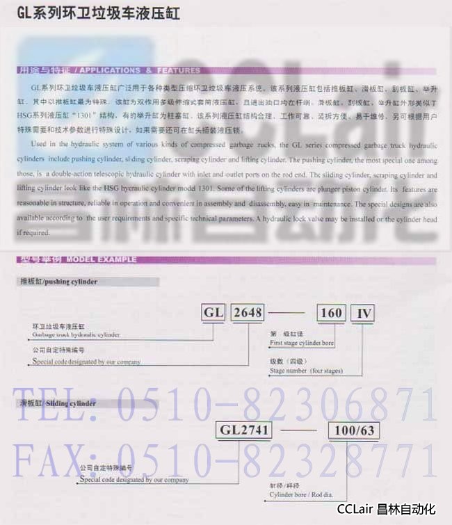 GL2648-160IV,GL2741-100/63,GL2738-110/63,GL2739-80/45,環(huán)衛(wèi)垃圾車液壓缸,