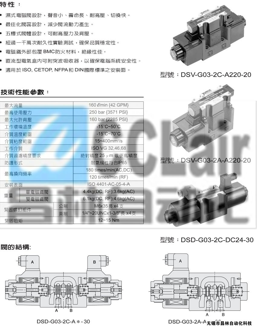DSV-G03-11A,DSV-G03-11AL,DSV-G03-11B,DSV-G03-11BL,DSV-G03-11C,濕式電磁鐵操作換向閥
