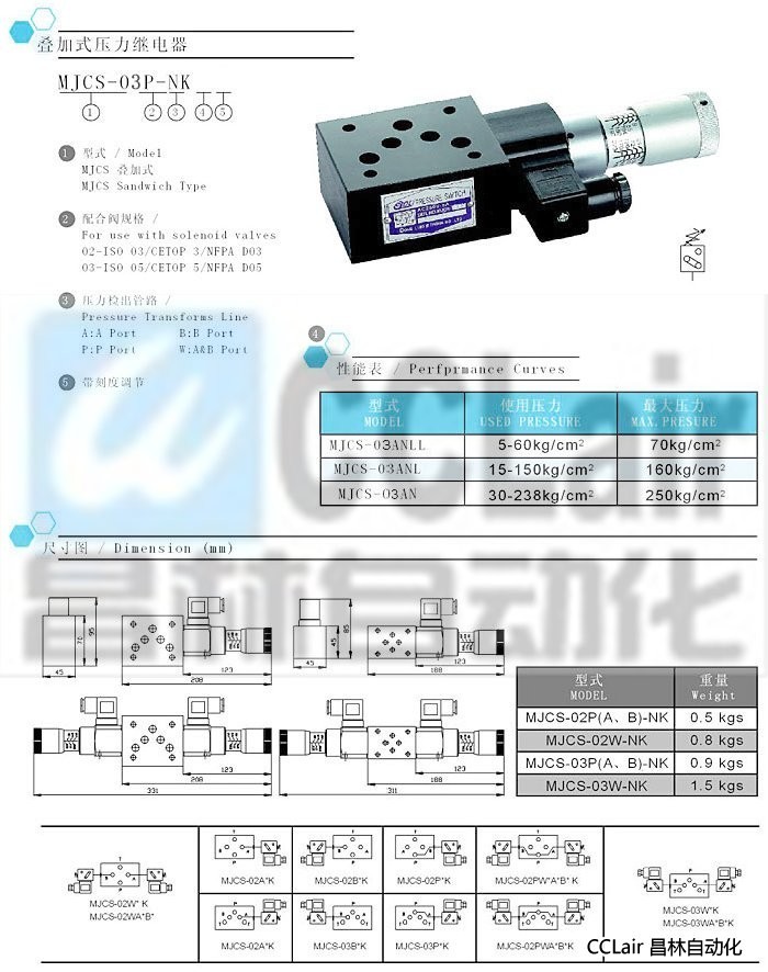 MJCS-03ANLL,MJCS-03ANL,MJCS-03AN,MJCS-02W-NK,MJCS-03W-NK,疊加式壓力繼電器,價格