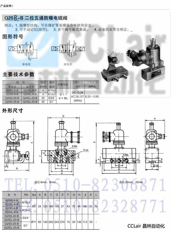 Q25D-6-B,Q25D-8-B,Q25D-20-B,Q25D-25-B,二位五通防爆電磁閥,