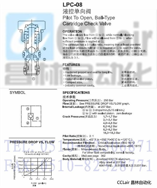 LPC-08-N-1.7,LPC-08-N-2.1,LPC-08-N-4.8,LPC-08-N-6.2,液控單向閥,