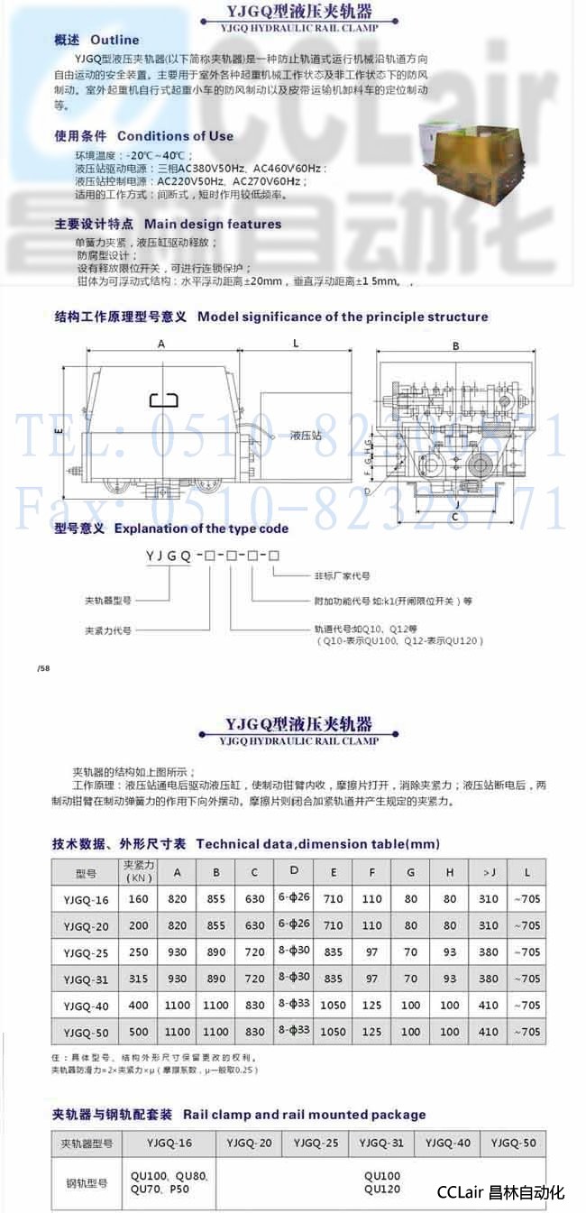YJGQ-16,YJGQ-20,YJGQ-25,YJGQ-31,YJGQ-40,YJGQ-50,YJGQ-60,液壓夾軌器