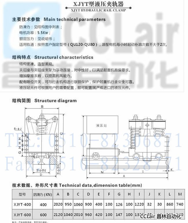 XJYT-400,XJYT-600,液壓夾軌器 ,