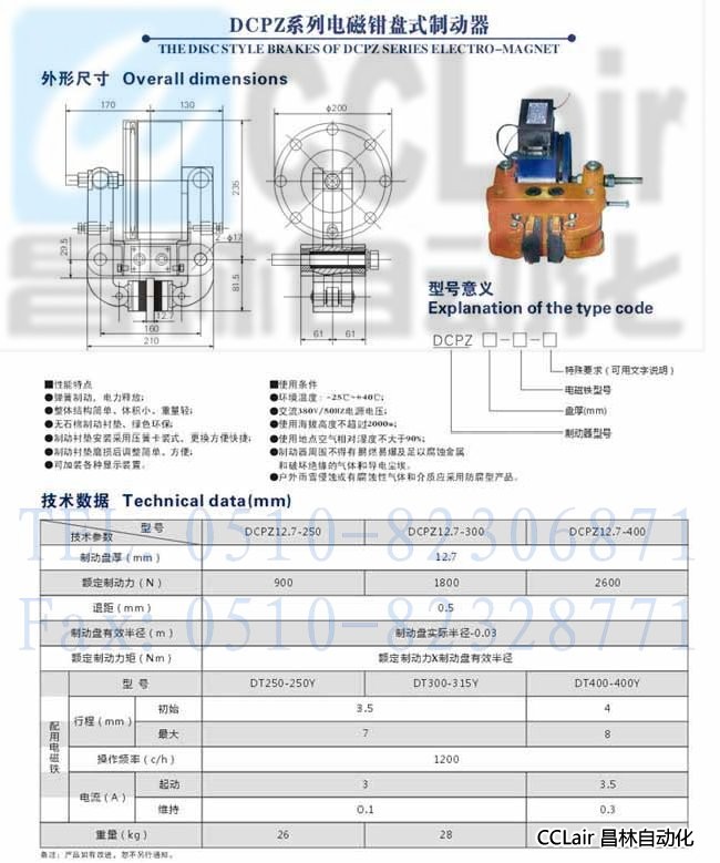 DCPZ12.7-250,DCPZ12.7-300,DCPZ12.7-400,電磁鉗盤式制動器