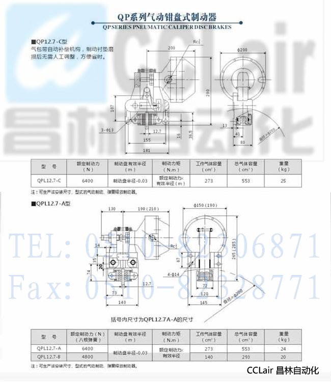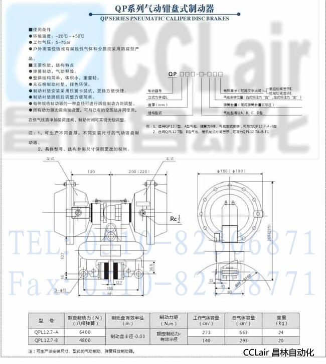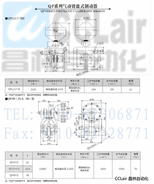 QP30-D,QP25.4-D,QP40-D,QP12.7-C,QP12.7-B,QP12.7-A,氣動鉗盤式制動器 |