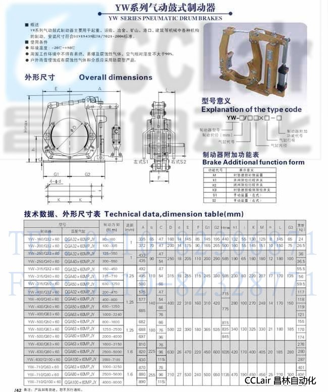 YW-160/Q32×60,YW-200/Q32×60,YW-250/Q32×60,氣動鼓式制動器