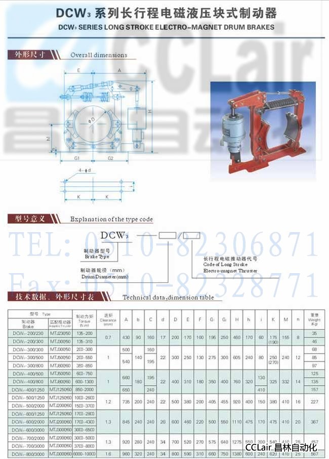 DCW3-600/3000,DCW3-700/2000,長行程電磁液壓塊式制動(dòng)器