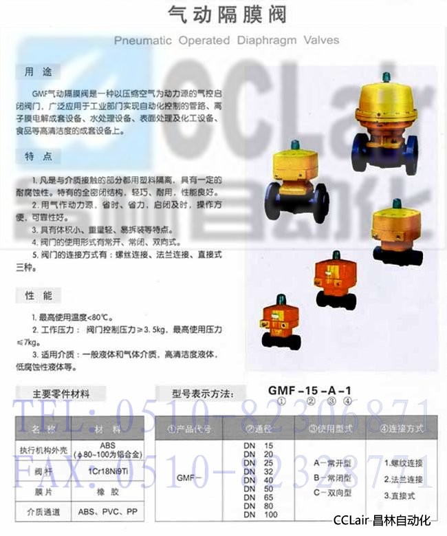 GMF-65-A-1,GMF-65-A-2,GMF-65-A-3,GMF-65-B-1,氣動隔膜閥,