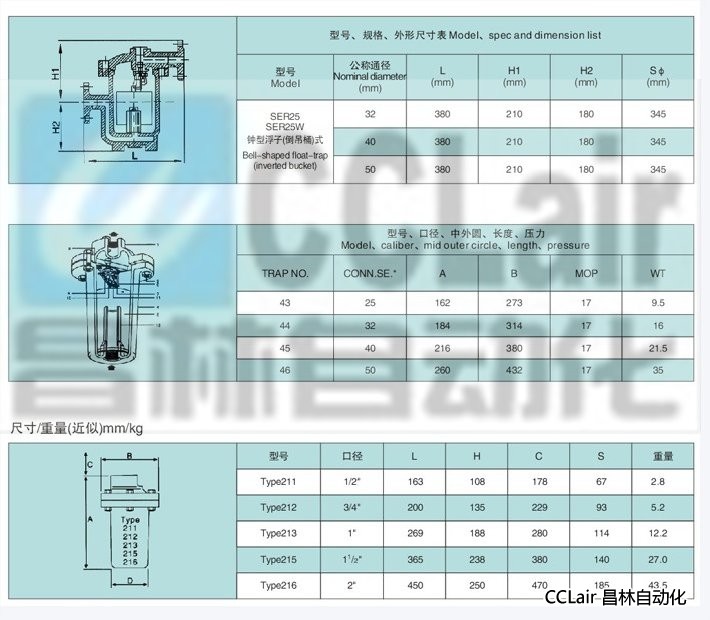SER25,Tybe216,Tybe211,Tybe212,Tybe213,Tybe215,SFL44H-16C, 蒸汽疏水閥