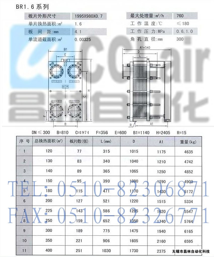BR1.6-250,BR1.6-300,BR1.6-350,BR1.6-400,板式冷卻器