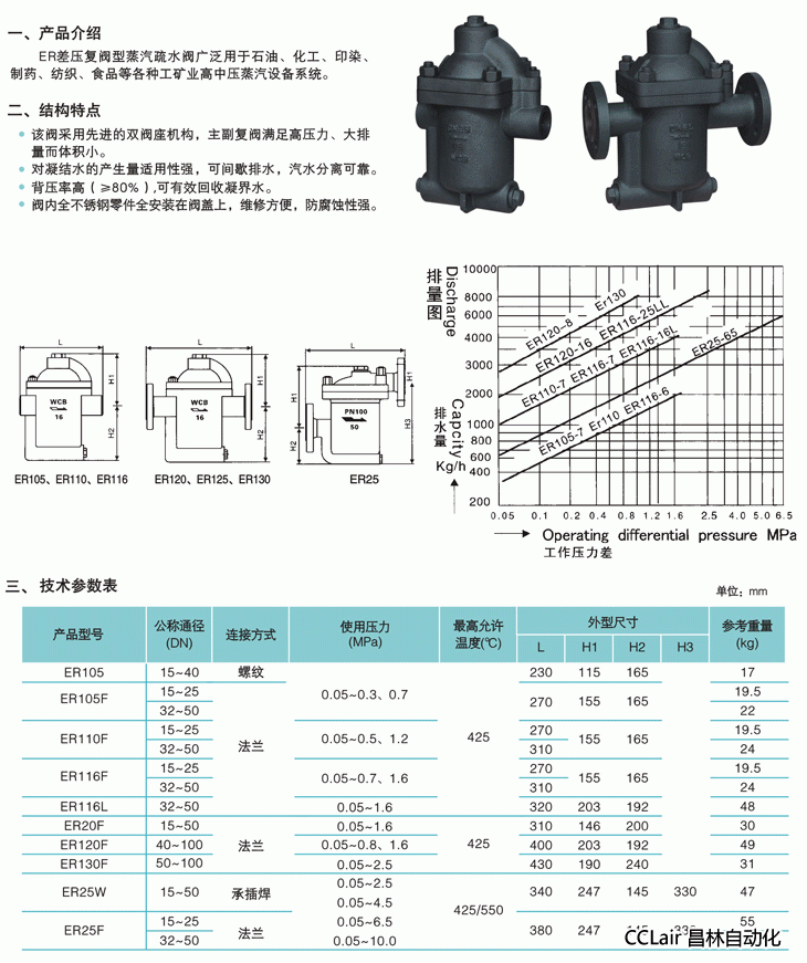 ER105,ER105F,ER110F,ER116F,ER116L,ER20F,ER120F,ER130F,ER25W,ER25F,差壓復閥鐘型浮子式蒸汽疏水閥 |