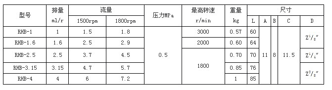 RHB型潤滑擺線齒輪油泵技術(shù)參數(shù)、規(guī)格: