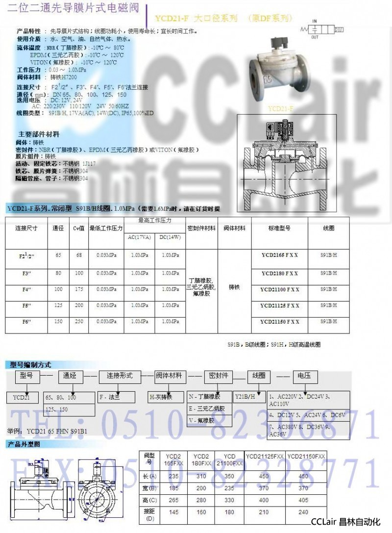 YCD2165F,YCD2180F,YCD21100F,YCD21125F ,YCD21150F,二位二通先導(dǎo)膜片式電磁閥