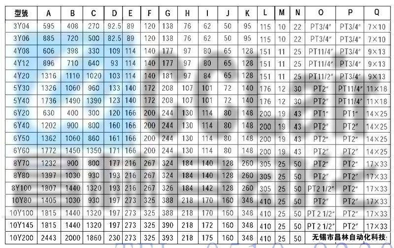 | 冷卻器規(guī)格 | 3Y04 | 3Y06 | 4Y08 | 4Y12 | 4Y20 | 5Y30 | 5Y40 |