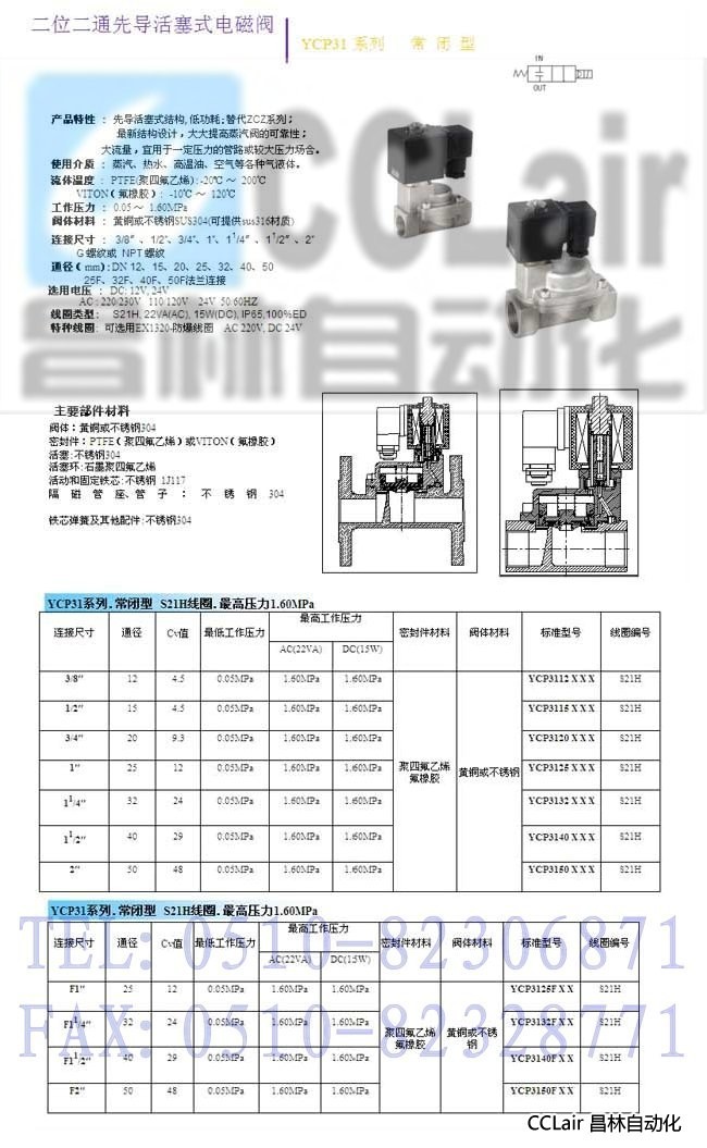 YCP3140,YCP3150,YCP3125F, YCP3132F, YCP3140F,YCP3150F,二位二通先導(dǎo)活塞式電磁閥 ,價(jià)格