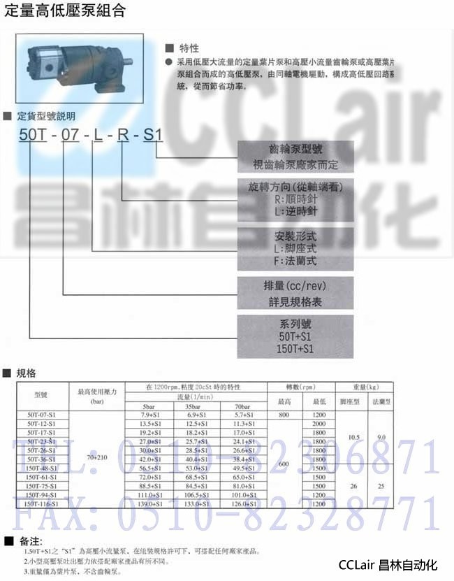 150T-48-L-R-S1,150T-48-F-L-S1,150T-48-F-R-S1,定量高低壓泵組合,