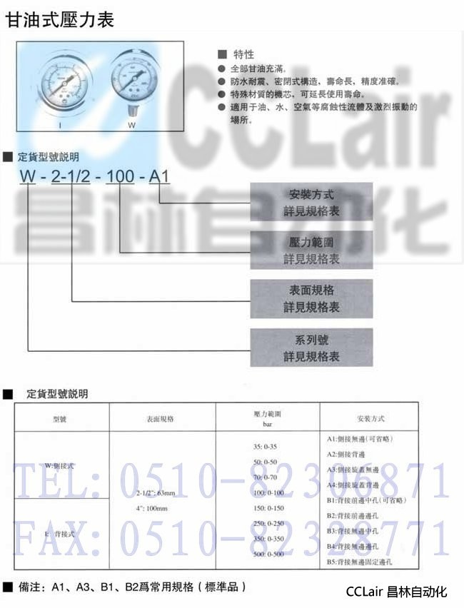 W-2-1/2-100-A1,W-4-100-A1,甘油式壓力表