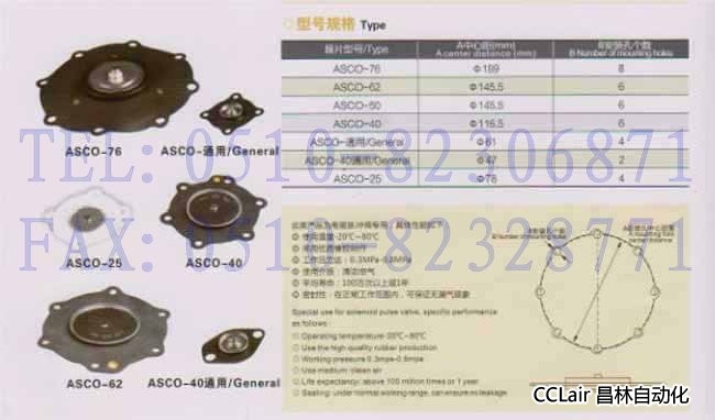 ASCO-76,ASCO-62,ASCO-50,ASCO-40,ASCO-25,脈沖閥膜片