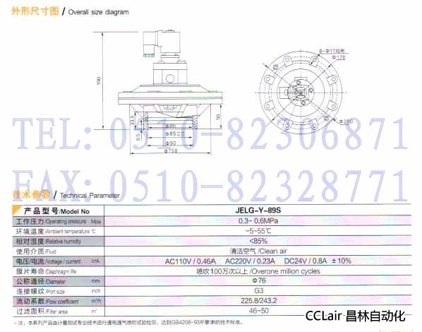 JELG-Y-89S,淹沒式電磁脈沖閥,