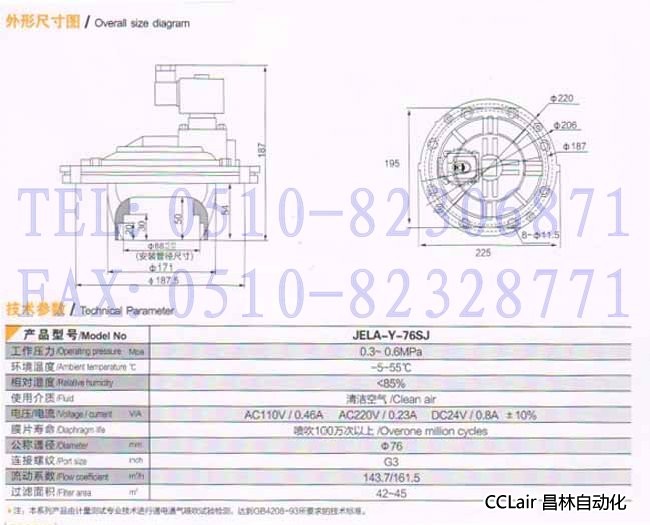 JELA-Y-76SJ,淹沒式電磁脈沖閥