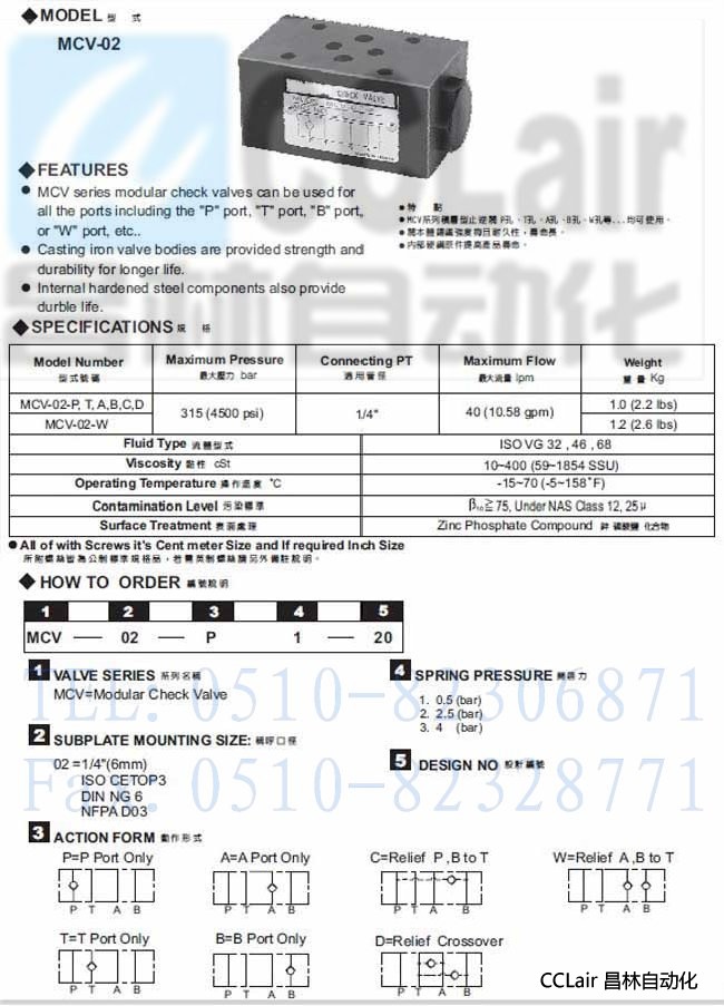 MCV-02-P,MCV-02-T,MCV-02-C,MCV-02-D,積層型止逆閥,