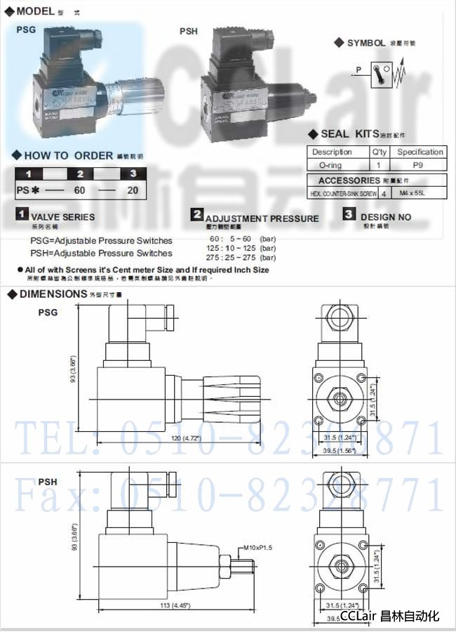 PSH-60-20,PSH-125-20,PSH-275-20,調(diào)整式壓力開關(guān),