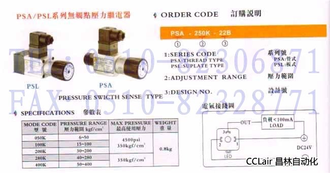PSL-050K-22B,PSL-100K-22B,PSL-200K-22B,PSL-280K-22B,PSL-400K-22B,壓力繼電器,