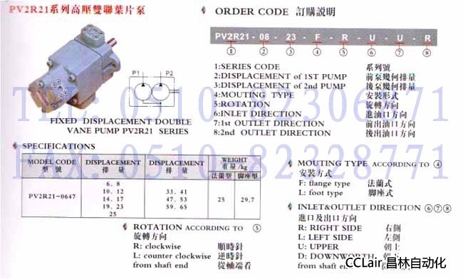 PV2R21-06,PV2R21-08,PV2R21-10,PV2R21-12,PV2R21-14,高壓變量葉片泵