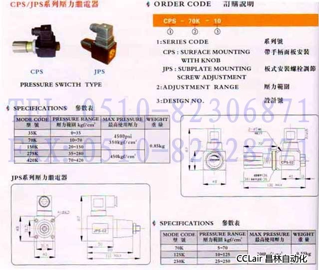 JPS-35K-10,JPS-70K-10,JPS-150K-10,JPS-275K-10,JPS-420K-10,壓力繼電器,
