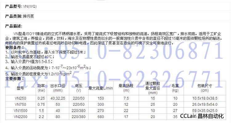 VN250,VN750,VN1500,VN2200,不銹鋼潛水排污泵,