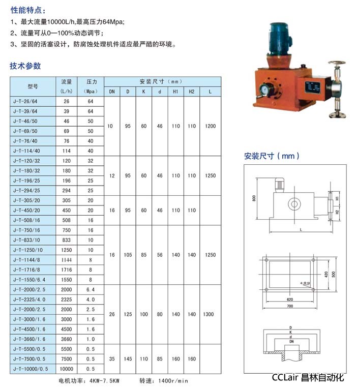 J-T-114/40,J-T-120/32,J-T-180/32,J-T-196/25,J-T-294/25,柱塞計量泵