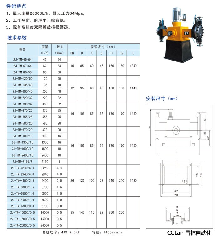 2J-TM-900/16,2J-TM-1350/16,2J-TM-1600/10,液壓隔膜計量泵
